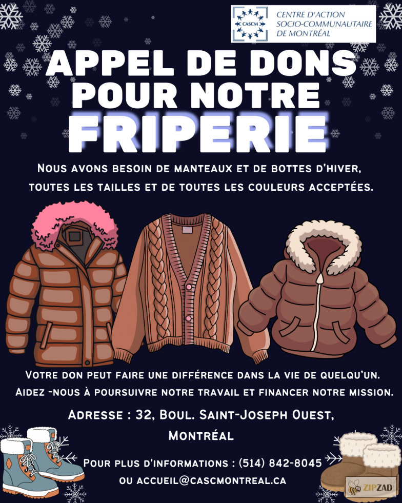 Informations : (514) 842-8045 accueil@cascmontreal.ca