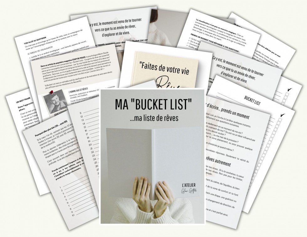Cet atelier présenté sous forme de guide t'invite à créer une Bucket List personnelle et vivante (une liste de rêves, petits et grands, que tu as envie de vivre) ? une liste d'expériences, de projets et d'idées à explorer au cours de ta vie.